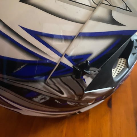 A small piece of the outer clear visor is missing (see image) but works fine.