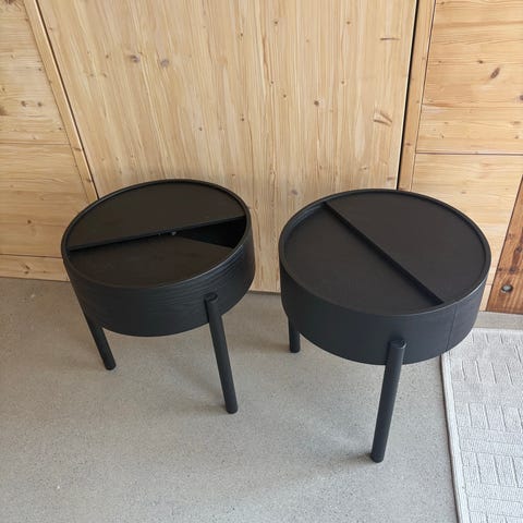 Tilaa säästävä ratkaisu, kevyet siirrellä sinne missä pöytätilaa tarvitaan. Yhtenäinen ilme, jos pöydät ovat samassa tilassa (sohva/kahvi/valaisin/kukkapöytä...).