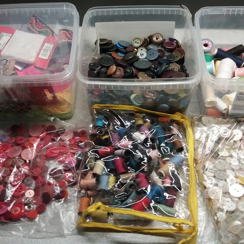 Ylimääräiseksi jääneet ompelukoneen puolat, kirkasta muovia. Mitta viimeisessä kuvassa.