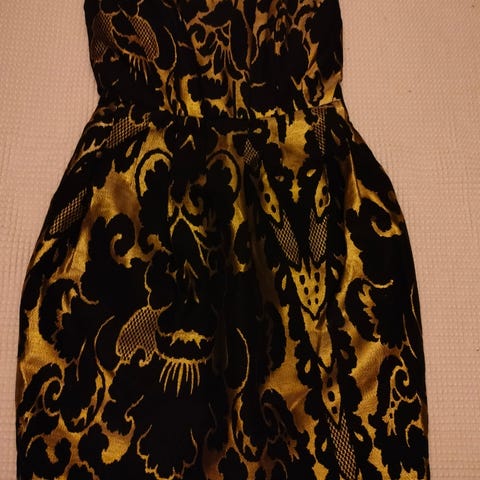 Musta, ns cocktail mekko, yksinkertainen , hijoissa kiva pieni yksityiskohta ja laadukasta 100% viskoosia.