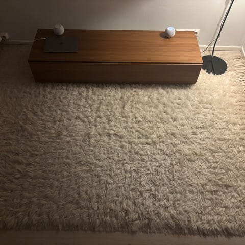 Myydään sisustuksen vaihtuessa Annon ihana, käsinkudottu Siipi villamatto. Matto on väreiltään kauniin laventeli ja luonnonvaalea. Maton kunto on todella hyvä ja edelleen muhkea.