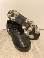 Myydään Adidas nappulakengät koossa 33. Nappulakengät ovat pääväriltään mustat, mutta niissä on häivähdys myös valkoista. Nappulakengissä on käytön jälkiä, mutta ne ovat silti käyttökelpoiset. Pahimmista kuluma kohdista kuvat liitteenä.