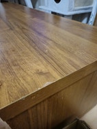 Ruskea TV-taso. Pieniä jälkiä kansilevyssä ja hyllyssä, mutta muuten siistissä kunnossa.