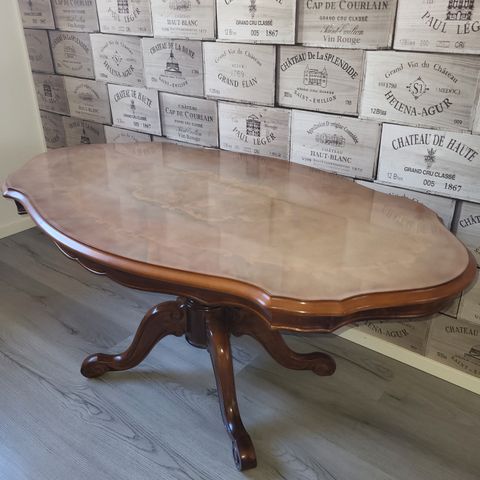 Upeilla yksityiskohdilla varustettu rokokoo-tyylinen sohvapöytä