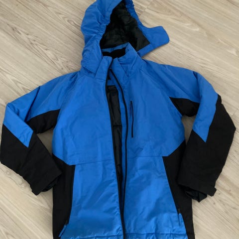 Kaksi hyväkuntoista takkia, kukallinen toppatakki/laskettelutakki, musta kevyttoppatakki