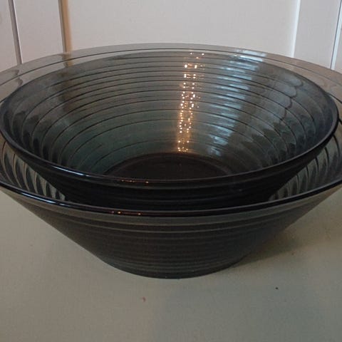 Täysin käyttämätön kaaipissa seisotettu kirkas Aino Aalto tarjoilukulho. Halkaisija 23cm ja korkeus 8cm. Tarra paikallaan. Nouto