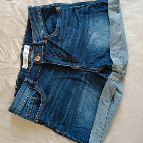 Farkkushortsit kokoa 38. Kaikinpuolin hyvässä kunnossa. Ehjät ja siistit. Ei moittimista.