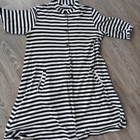 Myydään hyväkuntoinen mustavalkoinen tasaraitainen Marimekon klassikko Kaste-mekko koossa S. 100% puuvillatrikoota. Tämä on vielä kulta-aikaa, Made in Finland -laatua. Kainaloissa pientä käytönjälkeä, hieman tyypillistä valkoisten raitojen tummumaa, mutta ei mielestäni mitään silmille räiskähtävää (ks. kuvat). Valkoiset raidat ovat muutoin mun silmään edelleen valkoiset. Hyvät raitakohdistukset sivusamoissa. Kaunis todella A-linjainen mekko taskuilla niin arkeen kuin rentoon juhlaankin.
