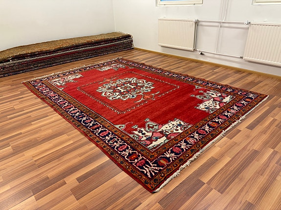 Käsinsolmittu persialainen/hamadaanimatto. Se on hyvin vanha matto. Noin 50/70 vuotta vanha, mutta hyvässä kunnossa oleva matto. Käsinsolmitut matot tulevat kauniimmiksi vanhetessaan.