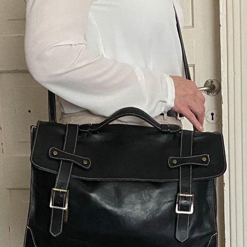 80-luvulta retro ns. Arkkitehtisalkku, puhvelinnahkaa. Valmistaja Three bags, koko reilu A4. Käytetty muutaman kerran nuottien kuljettamiseen.