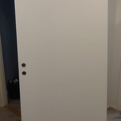 mukaan karmit valkoiset 92mm. Ei heloja. Oven kätisyys on vaihdettavissa oikea/ vasen.