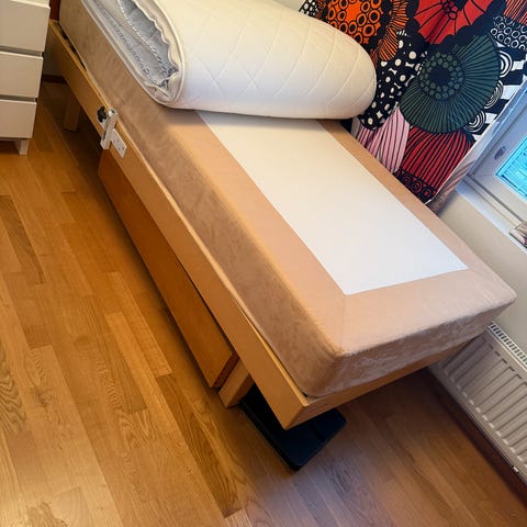 Lattoflex 180x200, kaksi säätöpohjaa 90x200, säätö manuaalisesti. Koivupuuta.