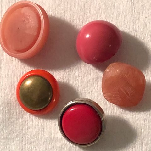 Kuvan mukaiset kullanväriset kevyt metallinapit. Koko 6 - 8 mm. Napit yksittäin 1,50€.