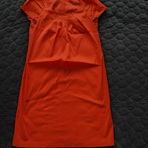 Kaunis, rento malli. Pari haalea tahra vasemmalla puolella, huomioitu hinnassa . Pituus noin 94 cm, rinnanympärys noin 46 cm. Oranssi/koralli.