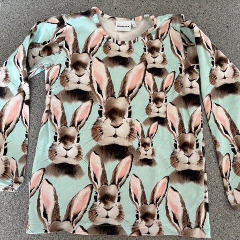 Myydään hyväkuntoinen Metsolan squirrel paita, pohjaväri persikka. Pientä pesuhaitua pinnassa