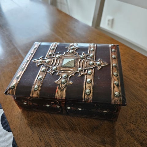 Haarukka ja veitsi.. vanhat koska ovat alkuperäiset tästä antiikkisesta korista.