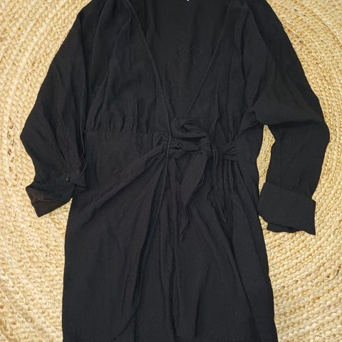 Kaunis kietaisumekko. Koko 18 eli 46, xxl. Kietaisumalli antaa kokovaraa. Rintamusta ommeltu vähemmän avonaiseksi, saa purettua. Ei rypisty. Pari kertaa pidetty.