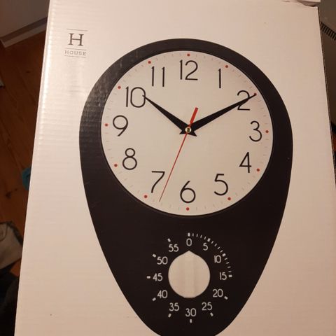 Mänty/kataja puusta valmistettu kello, jonka sisällä 1/2 litran lasipullo.