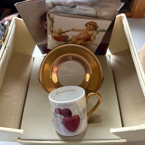 ”Coffee Mug Love Heart Gold, jonka Alexander Girard on suunnitellut Vitraa varten, on koristeltu ikonisella "Gold Love" -kuviolla. Kultainen sydänmuoto sanalla "LOVE" heijastaa Girardin taitoa yhdistää eleganssi rohkeisiin graafisiin elementteihin. Girardin ravintolasisustuksissa luomista ainutlaatuisista esineistä inspiroituneena tämä muki tuo jokaiseen kahvihetkeen hienostuneen kosketuksen. Kultainen yksityiskohta korostaa hienostunutta estetiikkaa, joka muuttaa arjen erityiseksi.”