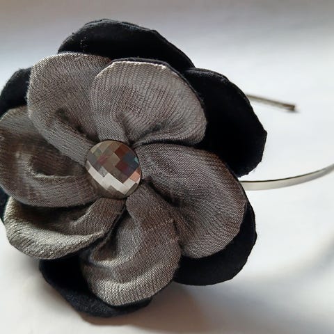 Hiuspinni / hiuskoriste / kangaskukka / kukkakangas / sinivalkoinen / pinni / asuste / kierrätetty kangas /