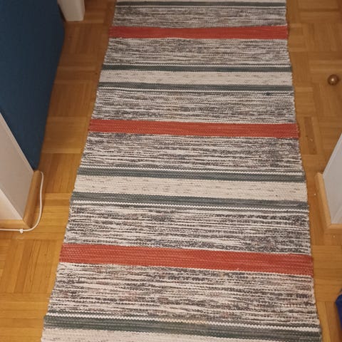 Räsymatto itsekudottu 83*340, käytetty siisti hajuton voin postittaa
