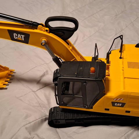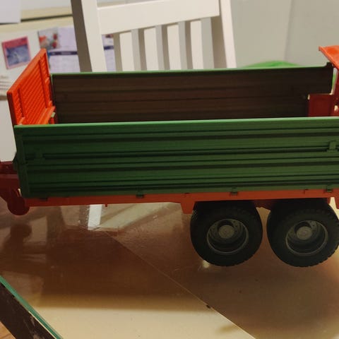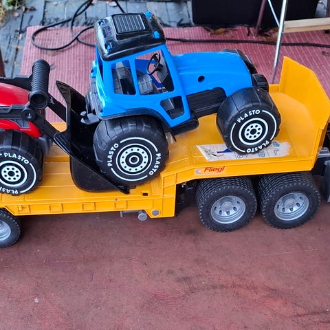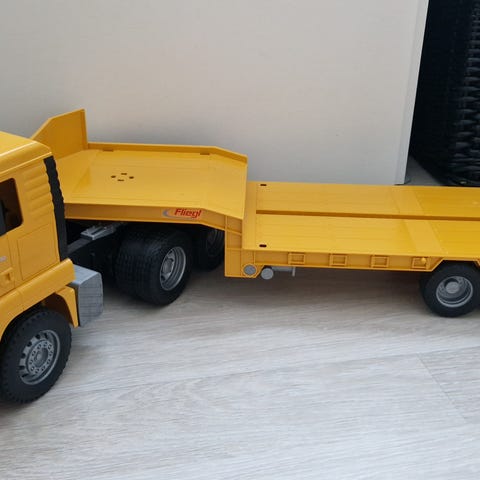 Iso Bruder lavetti ja kauhakuormain. Hyvässä kunnossa, joitain naarmuja. Toisen nousurampin tanko mikä pitää sen ylhäällä on kadonnut. Kuvan oton jälkeen oikean puolen peili on irronnut.