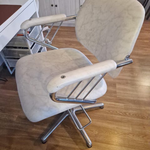 Ergonomic chair in neat condition with some marks of usage on the knee pads.