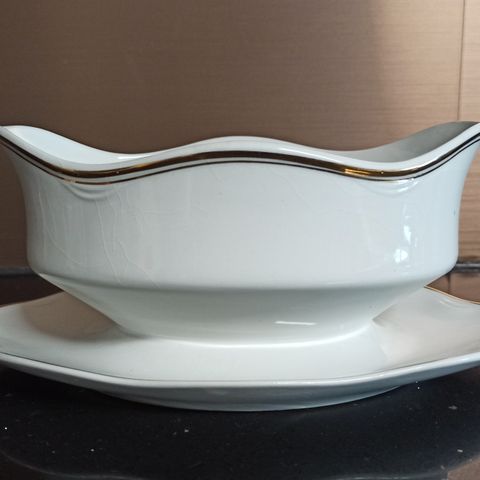 Hyväkuntoinen Arabian kastikekulho 1940-luvulta. Piippuleimalla. Suunnittelija Olga Osol.