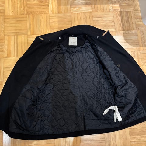 Uusi Molo-merkin villakangastakki. Laputkin vielä paikallaan. Löytyi kaapista siivotessa, poika jo 10 cm yli koon kasvanut. Väri Dark Navy, mutta näyttää enemmän mustalta.