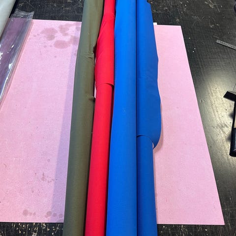 Kurahousukangasta on 105cm ja sen leveys on 150 cm. Kangas tuli ostettua paikkauksia varten etukäteen. Sitten piti tehdä suojapussi. No ei sitten sitäkään tullut tehtyä.