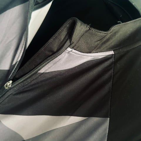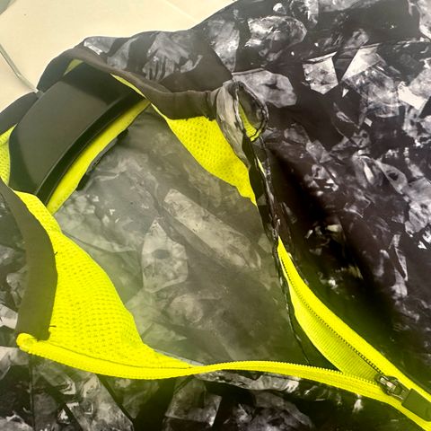 Pyöräilytakki suojaavasti ja näyttävällä geometrisellä kuviolla