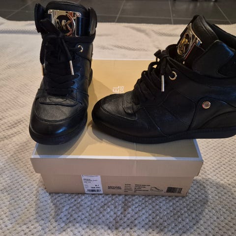 Ruskea kultaiset korkeavartiset MK korkolenkkarit. Ostettu New Yorkista. Nahka lähtenyt hieman varren sisäosasta, muttei näy ulospäin.