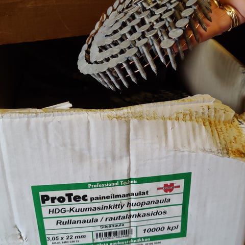 Palahuopaa ja alushuopaa. Lisäksi reunakaistaa, rullahuopaa, peltejä ym. Ja puutavaraa kaikenlaista.