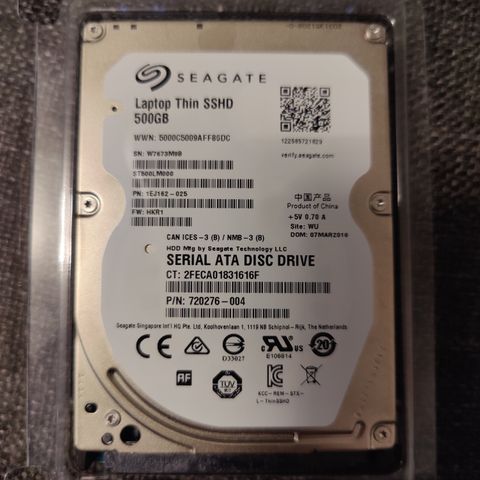 Kiintolevy läppäriin, voidaan käyttää myös pöytäkoneessa. Kapasiteetti 500GB, pyörimisnopeus 5400RPM, koko 2,5", mallinumero ST500LX012. Kiintolevy on käyttämätön ja edelleen aukaisemattomassa suojamuovissa.
