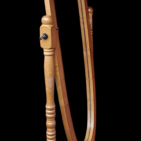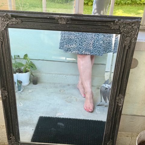 Hyväkuntoinen länkipeili, jossa puu kehys musta. Korkeus 62 cm ja leveys 37 cm.