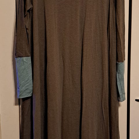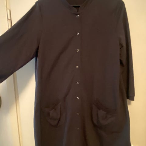 Marimekon hyvä neulemekko, musta-harmaa raitainen. Olalta helmaan 90 cm ja kainalosta kainaloon 56 cm, joustaa.