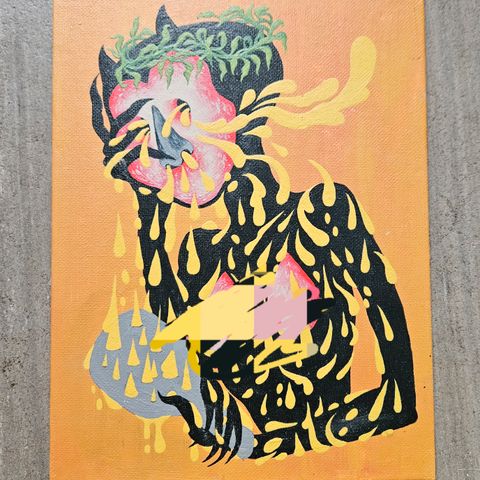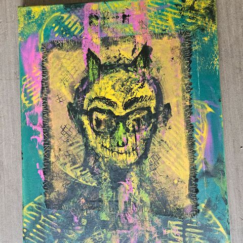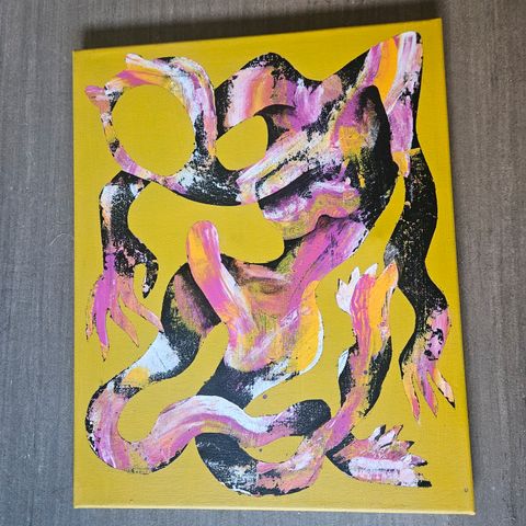 Synkkä, silmiinpistävä maalaus vuodelta 2017. Materiaalit: Akryylimaali, modellinpaste ja modellipaste pearl.