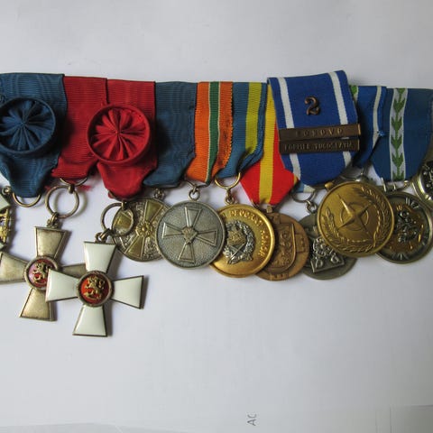 Yhdistyneet Kansakunnat sininen baretti lippalakki, jossa on virallinen UN-logo ja koristeelliset mitalit. Lippalakki on valmistettu sinisestä kankaasta ja sopii UN:n henkilökuntaan tai keräilykäyttöön.