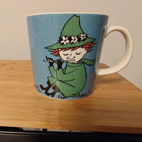 Asiasanat: Muumit, Muumimuki, Muumilautanen, keräily, arvoastiat, harvinainen, sininen Nuuskamuikkunen lautanen, Muumit-setti, MoominFinland, ArabiaFinland, Made in Finland, MoominCharacters, Tove Slotte, blue Snufkin plate, Moomin plate & Moomin mug set, lahjat, joulu, lahjaideat