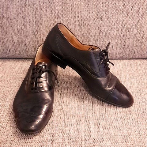 Vähän käytetyt puvun kengät, uudet pohjalliset.