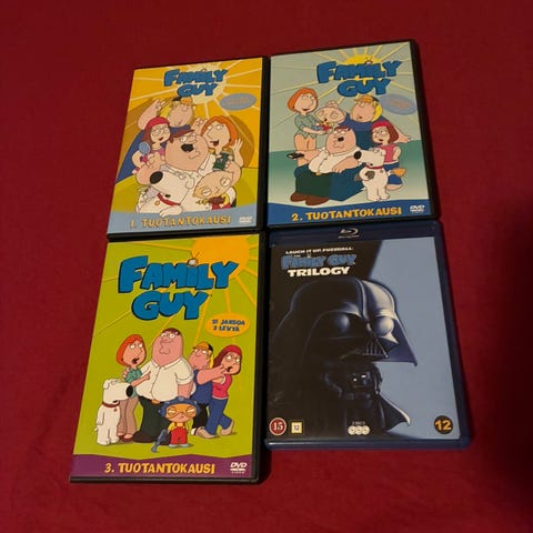 Myydään family guyn 4 ensimmästä tuotantokautta+ Star wars speciaali dvdllä.