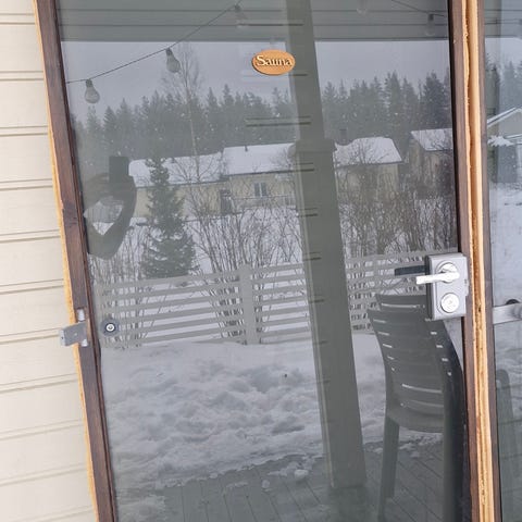 Karkaistu etsattu liukulasiovi rosteritangolla 950 x 2110 käy 900 x 2100 aukkoon