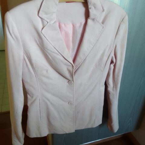 Käyttämätön, laput kiinni vaaleankeltainen kangastakki.