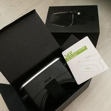 VR lasit älypuhelimelle. Toimivana pois käytöstä otettu. Puhelimen luukun toisessa reunassa lohjennut pala irti, ei vaikuta käyttöön. Toisen puolen nenän kohdalle tuleva pehmuste liimattu tehtaalla liian keskelle, ja siksi haljennut käytössä. Muuten ehjä ja käyttökelpoinen.