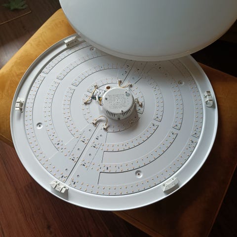 Rakenne: Runko valkoiseksi pulveripinnoitettua sähkösinkittyä teräslevyä. Heijastin kiiltoeloksoitua alumiinia.