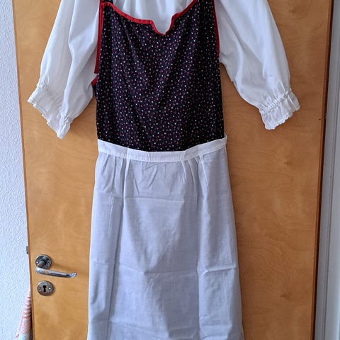 Hyväkuntoinen feresi, mekon pituus n. 74 cm. Ollut käytössä n. 7-8-vuotiaalla. Mekkoon ommeltu pieni Kalevala Koru. Kysy lisää jos kiinnostaa.