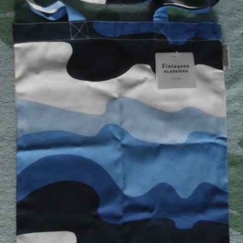 Tukevasta puuvillasta tehty, käyttämättä jäänyt Katri Helena -sarjaan kuuluva kangaskassi jostain takavuosilta.