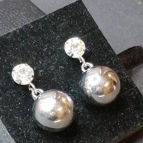Valitettavasti en tiedä pallon enkä häkin materiaalia, mutta ainakin koukuissa on hopean 925 leimat ja hopeakoruina olen nämä joskus liikkeestä ostanut.