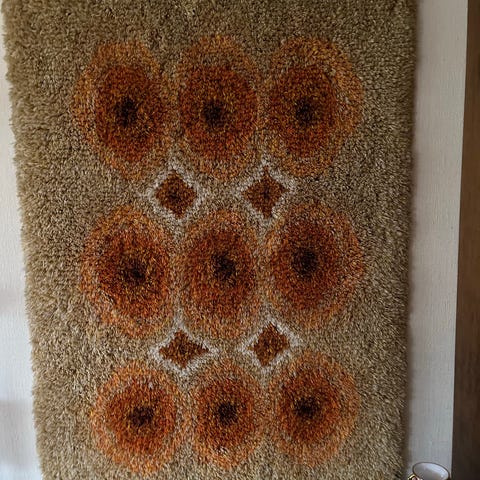 Oili Mäen Ystävyys 3D ryijy v. 1981. Japanin suurlähetykselle tilattu työ. Vain nouto