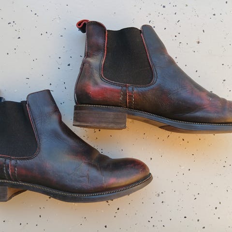 Muutaman kerran käytetyt nahkalenkkarit. Hyvät jalassa, mutta itselle liian suuret.